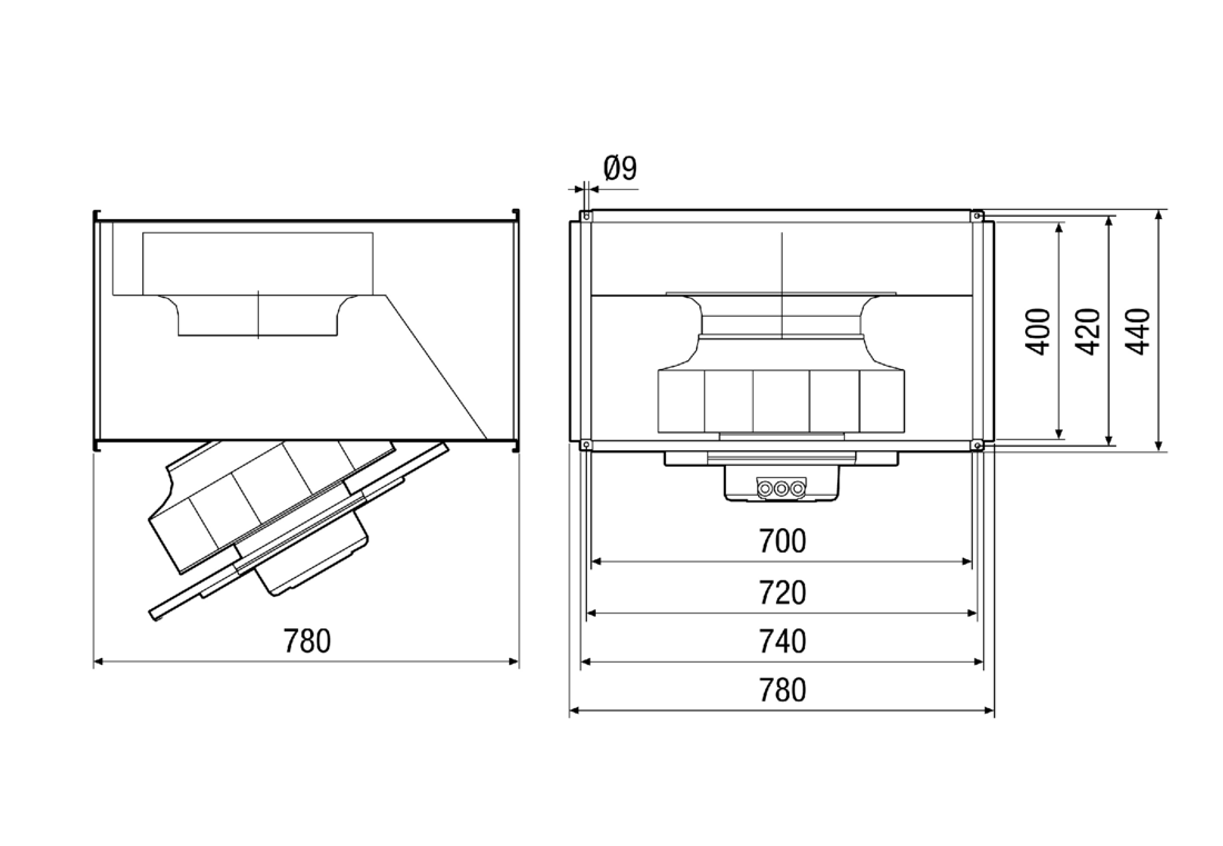 امنیت بالا در برابر خرابی و ذوب هواکش های کانالی سانتریفیوژی DSK EC با کیفیت ممتاز و مشخصات فنی قابل اعتماد؛ دارای عمر طولانی واقعی؛ با مواد مرغوب بدنه که مانع از تغییر رنگ و کهنه شدن میگردد؛ سری هواکش های کانالی DSK-EC باتوجه به تکنولوژی EC دارای مصرف بهینه و نماد Blue Performance بوده و نیز با وجود جاذب های صوتی برای استفاده در کاربردهای کم صدا بسیار مناسب می باشد؛ امنیت بالا در برابر خرابی و ذوب شدن (بینیاز از پشتیبانی و سرویس، دارای موتور قوی بلبرینگی بینیاز از روغنکاری و امکان حفاظت در برابر اضافه بار حرارتی بعنوان مشخصه استاندارد)؛ قابل استفاده در اماکن تجاری، نمایشگاه، ادارات و محل کار، سایت های تولیدی، ساختمان های صنعتی؛ سری DSK EC این هواکش ها در سایز های 25*50 تا 50*100 سانتی متر تولید که ظرفیت کاری آنها از 2.000 تا 11.700 متر مکعب بر ساعت است؛ قابلیت نصب مستقیم در کانال های تهویه مستطیلی؛ دارای پروانه های سانتریفیوژی از جنس استیل گالوانیزه با تیغه های خم شده رو به عقب که بطور دینامیکی در دوسطح بالانس شده اند؛ با استفاده از پتانسومتر 0 تا 10 ولت، می توان سرعت را بطور پیوسته تغییر داد؛ مقاوم در برابر نفوذ آب (IP 55) برای حفاظت محصول و ایمنی مصرفکننده؛ ترمینال اتصالات بدون پتانسیل می باشد که باید به کلید حفاظت موتور MV 25 یا به مدار کنترل کنتاکتور متصل گردد؛ برای جلوگیری از انتقال ارتعاشات به سیستم کانالی، از کوپلینگ های انعطاف پذیر ELP استفاده شده است.