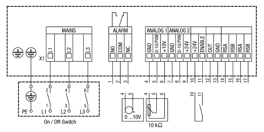 با استفاده از پتانسومتر 0 تا 10 ولت، می توان سرعت را بطور پیوسته تغییر داد.