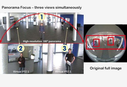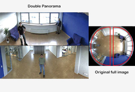 علیرغم هزینههای بسیار کم سیستم، دوربینهای داخلی موبوتیکس تمامی ویژگیهای کاربردی مطلوب مانند تکنولوژی لنز نیمکرهای را داراست. از آنجایی که فاصلهها در مناطق داخلی کوتاهتر هستند، بنابراین استفاده از یک سیستم تصویری نیمکرهای با لنز چشم ماهی 360 درجه یا 180 درجه پاناروما، اغلب موثرترین راهحل برای نظارت داخلی است. اینچنین دوربینی به تنهایی و مخفیانه میتواند تمامی اتاق را بدون وجود هیچ نقطه کوری نظارت کند.