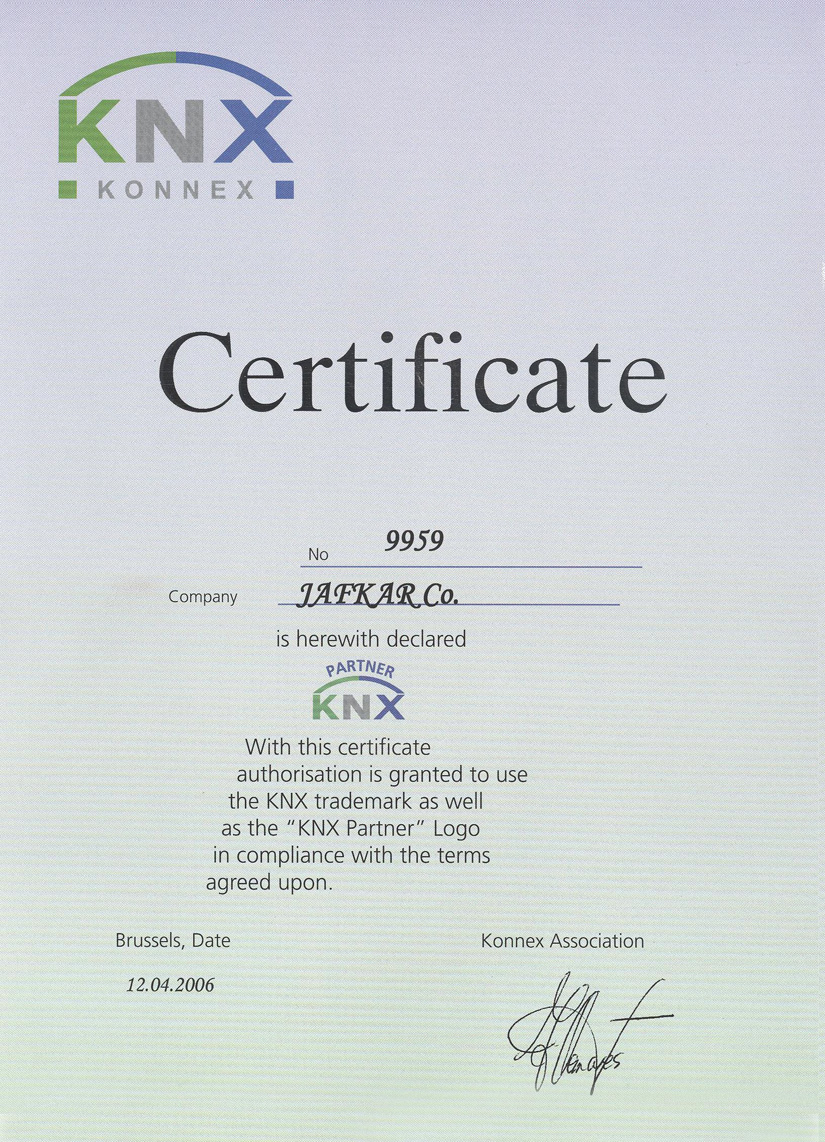 این شرکت در ابتدای فعالیت خود در زمینه سیستمهای مدیریت ساختمان، از آنجایی که معتقد به اجرای اصولی و زیربنایی کار با نیت جلب رضایت مشتری است، اقدام به دریافت گواهینامههای معتبر بینالمللی در این زمینه نموده و موفق شد نام خود را در لیست اولین دارندگان ایرانی این مدارک قرا دهد.